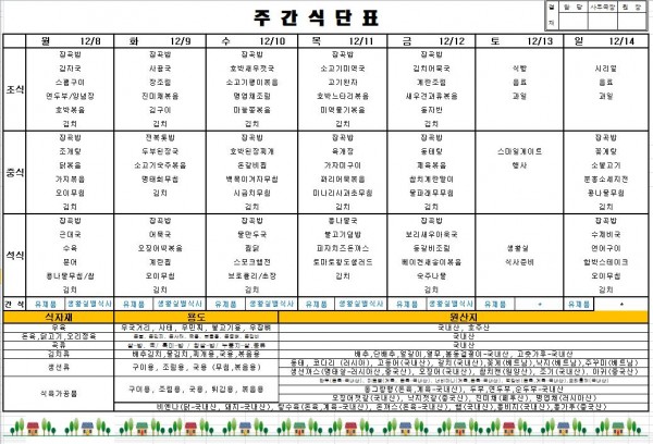 2025년 12월 둘째주 식단표