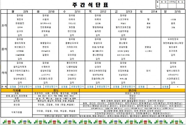 2026년 2월 둘째주 식단표입니다