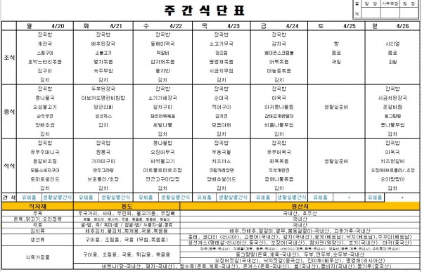 2026년 04월 넷째주식단표 > 식단표