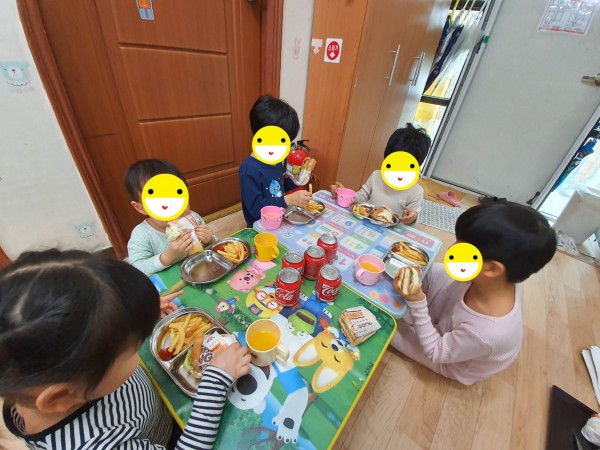 스마일맨 뒤에는 맛있게 먹고 있는 아이들이 모습이 있답니다.^^